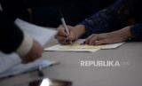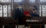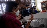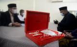 Pasangan melangsungkan pernikahannya di KUA Tebet, Jakarta, Selasa (22/02/2022). Sejumlah pasangan sengaja melangsungkan pernikahannya pada hari ini yang memiliki tanggal, bulan dan tahun yang unik yakni 22-02-2022. (FOTO : Prayogi/Republika)