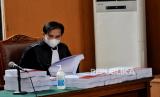 Hakim Ketua Muhammad Arif Nuryanta (kanan) berhincang bersama Hakim Anggota saat sidang tuntutan terkait dugaan unlawful killing atau pembunuhan diluar proses hukum kepada laskar FPI yang digelar secara daring di Pengadilan Negeri Jakarta Selatan, Jakarta, Selasa (22/2/2022). Dua terdakwa dugaan unlawful killing Laskar FPI yakni Briptu Fikri Ramadhan dan Ipda M Yusmin Ohorella dituntut 6 tahun penjara oleh Jaksa Penuntut Umum (JPU) setelah terbukti secara sag melakukan pidana merampas nyawa orang secara bersama-sama. Republika/Thoudy Badai (FOTO : Republika/Thoudy Badai)