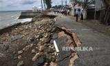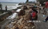 REPUBLIKA.CO.ID, BUTON -- Sejumlah warga berada dijalan penghubung antara 3 kabupaten wilayah kepulauan yang rusak usai dihantam ombak tinggi di Pantai Batauga, Kecamatan Batauga, Buton Selatan, Sulawesi Tenggara, Selasa (22/2/2022).
