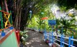 Ruang Terbuka Hijau juga ikut dicat warna biru di bantaran Sungai Code Jetisharjo, Yogyakarta, Rabu (23/2/2022). Warga RW 7 di Jetisharjo menghias dengan mengecat ruang terbuka hijau, pagar, tangga, dan dinding rumah dengan warna senada biru dan putih. Dengan penataan kembali wilayah ini diharapkan bisa membangkitkan kembali UMKM seperti sebelum pandemi Covid-19. Karena di Jetisharjo juga mengembangkan ekowisata jelajah kampung di Bantaran Sungai Code. (FOTO : Wihdan Hidayat / Republika)