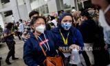 Keluarga jenazah Tiur Octavia (24) yang merupakan salah satu relawan tenaga kesehatan di RS Darurat Covid-19 Wisma Atlet Kemayoran usai mengikuti prosesi pelepasan di Jakarta, Rabu (23/2/2022). Menurut Koordinator Humas RSDC-19 Kolonel dr Mintoro Sumego, selama covid-19, jumlah relawan tenaga kesehatan yang meninggal akibat terinfeksi Covid-19 di RS Darurat Covid-19 Wisma Atlet Kemayoran sebanyak 5 orang. Republika/Thoudy Badai (FOTO : Republika/Thoudy Badai)