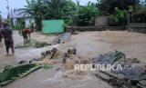 REPUBLIKA.CO.ID, KUPANG -- Warga memungut pepohonan yang terbawa oleh air saat tanggul penahan kali jebol di Kota Kupang, NTT, Rabu (23/2/2022). Hujan yang mengguyur wilayah tersebut sejak Selasa (22/2) hingga Rabu 23/2) tersebut mengakibatkan tanggul jebol dan sebanyak 84 rumah terendam banjir. ANTARA FOTO/Kornelis Kaha/rwa.
