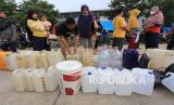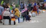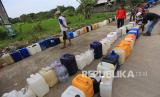REPUBLIKA.CO.ID, INDRAMAYU -- Pedagang menata jeriken saat antre membeli minyak goreng curah murah di Pasar Karangampel, Indramayu, Jawa Barat, Rabu (23/2/2022). Operasi pasar minyak goreng curah itu digelar khusus untuk pedagang dengan harga Rp11.700 per kilogram.