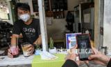 REPUBLIKA.CO.ID, DEPOK -- Toko kopi menyediakan pelayanan pembayaran dengan QRIS di Nyambi Kopi, Depok, Jawa Barat, Rabu (23/2/2022). Bank Indonesia (BI) kembali menaikkan batas maksimal transaksi Quick Response Code Indonesian Standard (QRIS) dari Rp10 juta menjadi Rp20 juta per transaksi.