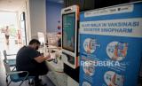 Warga mendaftar vaksin booster atau vaksin penguat jenis sinopharm di Klinik Kimia Farma, Jalan Radio Dalam, Jakarta, Kamis (24/2/2022). Menteri BUMN Erick Thohir kembali menggelar program vaksin gotong royong dengan membuka layanan vaksin booster jenis Sinopharm di 350 klinik Kimia Farma sebagai upaya percepatan pemerataam vaksinasi. Republika/Thoudy Badai (FOTO : Republika/Thoudy Badai)