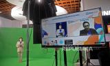 Head of Equity Research BRI Danareksa Sekuritas Helmy Kristanto (kanan dalam Layar) menjadi pembicara BRIGHTS FORUM 2022 dalam rangkaian acara peluncuran aplikasi BRIGHTS di BRInnovation Centre, Gedung BRI I, Kamis (24/2/2022). PT BRI Danareksa Sekuritas (BRIDS) meluncurkan new online trading system bernama BRIGHTS yang merupakan sebuah aplikasi yang dikembangkan dengan teknologi terkini untuk memberikan kenyamanan berinvestasi bagi seluruh lapisan investor di pasar modal.Prayogi/Republika. (FOTO : Prayogi/Republika)