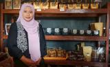 Pemilik UD Cangkir Vera Damayanti di depan etalase produknya di Rembang, Jawa Tengah, mengolah bijih kopi hingga menjadi kopi bubuk. UMKM binaan PT Semen Gresik ini mampu memproduksi 4 ton kopi Robusta dan Arabika demgan omset mencapai Rp180 juta. (FOTO : Dok Semen Gresik )