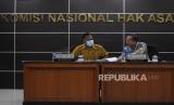 REPUBLIKA.CO.ID, JAKARTA -- Komisi Nasaional Hak Asasi Manusia menyampaikan keterangan kepada wartawan terkait kasus ricuh pengukuran lahan Wadas di Jakarta, Kamis (24/2/2022) Dari investigasi yang dilakukan pada 11-14 Februari 2022 tersebut Komnas HAM menemukan adanya kekerasan berlebihan yang dilakukan oleh aparat kepolisian kepada warga Desa Wadas, Purworejo, Jawa Tengah, saat melakukan pengamanan pengukuran lahan untuk tambang batu Andesit.