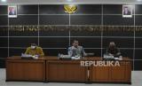 Ketua Komnas HAM Ahmad Taufan Damanik (tengah), Komisioner Komnas HAM, Beka Ulung Hapsara (kanan), dan Komisioner Komnas HAM Choirul Anam (kiri) menyampaikan keterangan kepada wartawan terkait kasus ricuh pengukuran lahan Wadas di Jakarta, Kamis (24/2/2022) Dari investigasi yang dilakukan pada 11-14 Februari 2022 tersebut Komnas HAM menemukan adanya kekerasan berlebihan yang dilakukan oleh aparat kepolisian kepada warga Desa Wadas, Purworejo, Jawa Tengah, saat melakukan pengamanan pengukuran lahan untuk tambang batu Andesit.. (FOTO : Republika/Putra M. Akbar)
