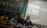 Komisioner Komnas HAM, Beka Ulung Hapsara (kiri) menyampaikan keterangan kepada wartawan terkait kasus ricuh pengukuran lahan Wadas di Jakarta, Kamis (24/2/2022) Dari investigasi yang dilakukan pada 11-14 Februari 2022 tersebut Komnas HAM menemukan adanya kekerasan berlebihan yang dilakukan oleh aparat kepolisian kepada warga Desa Wadas, Purworejo, Jawa Tengah, saat melakukan pengamanan pengukuran lahan untuk tambang batu Andesit. Republika/Putra M. Akbar (FOTO : Republika/Putra M. Akbar)
