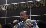 Ketua Komnas HAM Ahmad Taufan Damanik menyampaikan keterangan kepada wartawan terkait kasus ricuh pengukuran lahan Wadas di Jakarta, Kamis (24/2/2022) Dari investigasi yang dilakukan pada 11-14 Februari 2022 tersebut Komnas HAM menemukan adanya kekerasan berlebihan yang dilakukan oleh aparat kepolisian kepada warga Desa Wadas, Purworejo, Jawa Tengah, saat melakukan pengamanan pengukuran lahan untuk tambang batu Andesit. (FOTO : Republika/Putra M. Akbar)