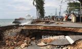 Kondisi jalan penghubung tiga kabupaten yang rusak dihantam ombak di Kecamatan Batauga, Buton Selatan, Sulawesi Tenggara, Kamis (24/2/2022). Pihak BPBD Kabupaten Buton Selatan mencatat belasan rumah terdampak badai dan angin kencang di Kecamatan Batauga, sementara kerusakan jalan penghubung antarkabupaten terparah di wilayah Pantai Batauga dan kerugian diprediksi mencapai Rp5 Milliar. (FOTO : Antara/Jojon)