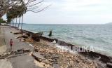 Seorang anak melihat jalan penghubung tiga kabupaten yang rusak dampak badai di Kecamatan Batauga, Buton Selatan, Sulawesi Tenggara, Kamis (24/2/2022). Pihak BPBD Kabupaten Buton Selatan mencatat belasan rumah terdampak badai dan angin kencang di Kecamatan Batauga, sementara kerusakan jalan penghubung antarkabupaten terparah di wilayah Pantai Batauga dan kerugian diprediksi mencapai Rp5 Milliar. (FOTO : Antara/Jojon)