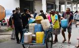 Warga mengangkut jeriken berisi minyak goreng curah yang dibelinya saat pendistribusian minyak goreng curah di Kota Madiun, Jawa Timur, Jumat (25/2/2022). Kementerian Perdagangan bekerja sama dengan PT Perusahaan Perdagangan Indonesia (Persero) mendistribusikan delapan ribu liter minyak goreng curah kepada para pedagang pasar dengan harga Rp10.500 per liter atau Rp11.700 per kilogram sehingga diharapkan bisa dijual kepada konsumen dengan harga Rp11.500 per liter atau Rp13.000 per kilogram guna menstabilkan harga dan mengatasi kelangkaan minyak goreng. (FOTO : ANTARA/SISWOWIDODO)
