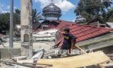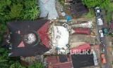 REPUBLIKA.CO.ID,PASAMAN -- Foto udara masjid yang runtuh akibat gempa di Nagari Kajai, Kabupaten Pasaman Barat, Sumatera Barat, Jumat (25/2/2022).