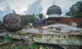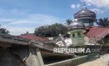 Kondisi Masjid Raya Kajai yang rusak akibat gempa bumi di Kecamatan Talamau, Kabupaten Pasaman Barat, Sumatera Barat, Jumat (25/2/2022). Gempa bumi berkekuatan 6,2 SR mengguncang Kabupaten Pasaman Barat, Sumatera Barat menyebabkan sejumlah bangunan di daerah tersebut rusak. (FOTO : Antara/Altas Maulana)