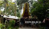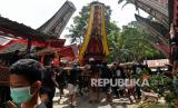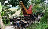 REPUBLIKA.CO.ID,TORAJA -- Keluarga duka mengarak jenazah saat prosesi penguburuan pada upacara pemakaman adat Toraja atau Rambu Solo di Sangalla, Tana Toraja, Sulawasi Selatan, Jumat (25/2/2022).