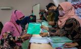 Warga menerima sertifikat tanah dalam Program Pendaftaran Tanah Sistematis Lengkap (PTSL) di Kelurahan Bendan Ngisor, Gajahmungkur, Kota Semarang, Jawa Tengah, Jumat (25/2/2022). Kementerian Agraria dan Tata Ruang / Badan Pertanahan Nasional menggenjot pembagian sertifikat tanah kepada masyarakat melalui Program PTSL agar pada tahun 2025 mendatang target pendaftaran 126 juta bidang tanah dapat tercapai sebagai upaya memberikan jaminan dan kepastian hukum kepada warga atas tanah yang dimiliki. (FOTO : ANTARA/Aji Styawan)