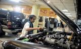REPUBLIKA.CO.ID, JAKARTA -- Pekerja mengecek mobil bekas di bursa mobil bekas, Blok M, Jakarta, Ahad (27/2/2022). Pasar mobil bekas Tanah Air diprediksi mengalami peningkatan di tahun ini. Sejak awal 2022, penjualan mobil bekas sudah mengalami peningkatan sekitar 30 hingga 40 persen. Tren kenaikan ini diperkirakan akan terus berlanjut hingga bulan Mei mendatang.