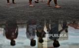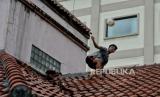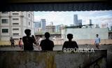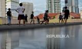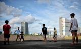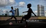 REPUBLIKA.CO.ID, JAKARTA -- Warga bermain bola di area rooftop di salah satu gedung di kawasan Mampang Prapatan, Jakarta, Ahad (27/2/2022). Area terbuka di rooftop gedung dimanfaatkan sejumlah warga untuk bermain bola karena minimnya lahan bermain di kawasan tersebut.
