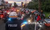 Satlantas Polres Bogor melakukan rekayasa buka tutup jalur untuk mengurai kepadatan.
