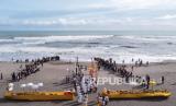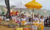 REPUBLIKA.CO.ID, BANTUL -- Sejumlah pemuka umat Hindu berjalan mengambil air suci saat upacara Melasti di Pantai Parangkusumo, Kretek, Bantul, DI Yogyakarta, Minggu (27/2/2022). Upacara Melasti yang diikuti umat Hindu secara terbatas tersebut untuk mensucikan diri dalam menyambut Hari Raya Nyepi tahun baru Saka 1944.