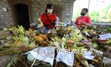REPUBLIKA.CO.ID, BANYUWANGI -- Umat Hindu membuat sesaji di Pura Puseh Kampung Bali Patoman, Banyuwangi, Jawa Timur, Selasa (1/3/2022). Kampung yang dijuluki miniatur Bali di Banyuwangi karena warganya mayoritas keturunan orang Bali itu menyiapkan perayaan Hari Raya Nyepi tahun baru saka 1944 itu secara bergotong royong.
