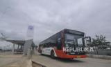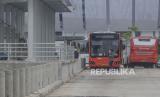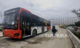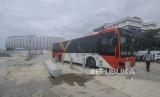 REPUBLIKA.CO.ID, JAKARTA -- Petugas Bus Transjakarta beraktivitas di Jakarta Internasional Stasium (JIS), Jakarta, Selasa (1/3/2022). PT Transportasi Jakarta (Transjakarta) mulai melakukan uji coba layanan non bus rapid transit (non BRT) rute 14 yang melayani trayek Stadion JIS - Senen.