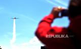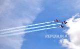 Aksi Jupiter Aerobatic Team sebelum aksi teaterikal saat memperingati Serangan Umum 1 Maret 1949 di Benteng Vredeburg, Yogyakarta, Selasa (3/3/2022). Aksi ini menggambarkan peristiwa Serangan Umum 1 Maret 1949 dilakukan di jajaran tertinggi militer di wilayah Divisi III/GM III dengan mengikutsertakan beberapa pucuk pimpinan pemerintah sipil setempat, berdasarkan instruksi dari Panglima Besar Sudirman. Serangan ini berhasil menduduki Yogyakarta selama enam jam. Sebelum aksi teaterikal diawali dengan parade pesawat aerobatik Jupiter milik TNI AU. (FOTO : Wihdan Hidayat / Republika)