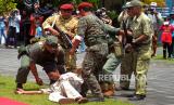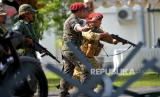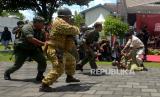 REPUBLIKA.CO.ID, YOGYAKARTA -- Aksi teaterikal oleh komunitas Djokjakarta 1945 saat memperingati Serangan Umum 1 Maret 1949 di Benteng Vredeburg, Yogyakarta, Selasa (3/3/2022). Aksi ini menggambarkan peristiwa Serangan Umum 1 Maret 1949 dilakukan di jajaran tertinggi militer di wilayah Divisi III/GM III dengan mengikutsertakan beberapa pucuk pimpinan pemerintah sipil setempat, berdasarkan instruksi dari Panglima Besar Sudirman. Serangan ini berhasil menduduki Yogyakarta selama enam jam. Sebelum aksi teaterikal diawali dengan parade pesawat aerobatik Jupiter milik TNI AU.