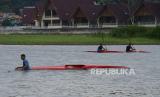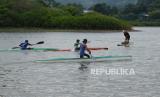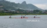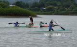 REPUBLIKA.CO.ID,BANDUNG -- Sejumlah atlet dayung jenis kayak, kano dan rowing melakukan latihan di Situ Ciburuy, Selasa (1/3/2022).