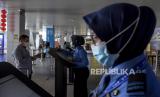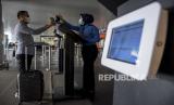 Penumpang pesawat terbang menunjukkan e-Hac (electronic-Health Alert Card) di aplikasi Peduli Lindungi kepada petugas sebelum keberangkatan di Bandara Husein Sastranegara, Kota Bandung, Kamis (3/3/2022). Pemerintah melalui Kementerian Kesehatan mengeluarkan kebijakan pelaku perjalanan domestik yang menggunakan transportasi udara diharuskan mengisi e-Hac (electronic-Health Alert Card) di aplikasi Peduli Lindungi sebelum keberangkatan yang berlaku mulai (3/3/2022). Foto: Republika/Abdan Syakura (FOTO : REPUBLIKA/ABDAN SYAKURA)