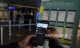 Penumpang pesawat terbang menunjukkan e-Hac (electronic-Health Alert Card) di aplikasi Peduli Lindungi sebelum keberangkatan di Bandara Husein Sastranegara, Kota Bandung, Kamis (3/3/2022). Pemerintah melalui Kementerian Kesehatan mengeluarkan kebijakan pelaku perjalanan domestik yang menggunakan transportasi udara diharuskan mengisi e-Hac (electronic-Health Alert Card) di aplikasi Peduli Lindungi sebelum keberangkatan yang berlaku mulai (3/3/2022). Foto: Republika/Abdan Syakura (FOTO : REPUBLIKA/ABDAN SYAKURA)