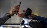 Penumpang pesawat terbang memindai kode batang e-Hac (electronic-Health Alert Card) di aplikasi Peduli Lindungi sebelum keberangkatan di Bandara Husein Sastranegara, Kota Bandung, Kamis (3/3/2022). Pemerintah melalui Kementerian Kesehatan mengeluarkan kebijakan pelaku perjalanan domestik yang menggunakan transportasi udara diharuskan mengisi e-Hac (electronic-Health Alert Card) di aplikasi Peduli Lindungi sebelum keberangkatan yang berlaku mulai (3/3/2022). Foto: Republika/Abdan Syakura (FOTO : REPUBLIKA/ABDAN SYAKURA)