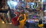 Wisatawan membeli cenderamata di Teras Malioboro 1, Yogyakarta, Kamis (3/3/2022). Dua tanggal merah Hari Isra Miraj dan Hari Libur Nyepi membawa rezeki bagi pedagang di Teras Malioboro 1. Pasalnya, Teras Malioboro 1 biasanya akan ramai pada akhir pekan saja. (FOTO : Wihdan Hidayat / Republika)