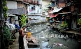 Warga beraktivitas di area pemukiman padat penduduk di kawasan Tanah Abang, Jakarta, Kamis (3/3/2022). Direktorat Jenderal Dukcapil Kementerian Dalam Negeri (Kemendagri) memperbarui data kependudukan semester II tahun 2021 dengan total penduduk Indonesia tercatat hingga 30 Desember 2021 berjumlah 273.879.750 jiwa. Sementara junlah penduduk DKI Jakarta per tahun 2021 mencapai 11,27 juta jiwa dan menjadi salah satu provinsi terpadat di Indonesia. Republika/Thoudy Badai (FOTO : Republika/Thoudy Badai)