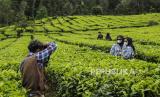 REPUBLIKA.CO.ID,BOGOR -- Sejumlah warga berfoto saat berwisata di kawasan kebun teh Puncak, Bogor, Jawa Barat, Kamis (3/3/2023).