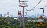 REPUBLIKA.CO.ID,JAKARTA -- Pengunjung menaiki kereta gantung saat berwisata di Taman Mini Indonesia Indah (TMII), Jakarta Timur, Kamis (3/3/2022).
