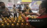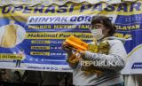 REPUBLIKA.CO.ID, JAKARTA -- Petugas menata minyak goreng saat operasi pasar di Polsek Tebet, Jakarta, Jumat (4/3/2022). Polres Jakarta Selatan mengadakan operasi pasar minyak goreng yang dijual sesuai harga eceran tertinggi (HET) yang ditetapkan pemerintah dengan kuota 300 orang per harinya dan maksimal pembelian sebanyak empat liter per orang.