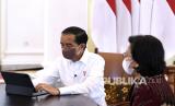 Presiden Joko Widodo (kiri) didampingi Menteri Keuangan Sri Mulyani saat mengisi Surat Pemberitahuan Tahunan (SPT) Pajak tahunan secara online di Istana Bogor, Jawa Barat, Jumat (4/3/2022).  (FOTO :  ANTARA//BPMI Setpres- Kris)