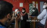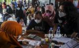 Sejumlah warga melakukan pendataan sebelum disuntik vaksin Covid-19 di RPTRA Tanah Merdeka, Ciracas, Jakarta, Sabtu (5/3/2022). Kementerian Kesehatan mencatat sebanyak 146.577.204 jiwa atau 70,38 persen masyarakat Indonesia sudah menerima vaksinasi dosis kedua Covid-19. (FOTO : Republika/Putra M. Akbar)