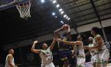 REPUBLIKA.CO.ID, JAKARTA -- Pacific Caesar Surabaya mengalahkan Satya Wacana Salatiga dalam pertandingan lanjutan Indonesian Basketball League (IBL) 2022 di Hall Basket Kompleks Gelora Bung Karno (GBK), Senayan, Jakarta, Sabtu (5/3/2022). Pacific Caesar Surabaya mengalahkan Satya Wacana Salatiga dengan skor 74-67.
