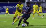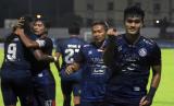 REPUBLIKA.CO.ID, GIANYAR -- Arema FC menaklukkan Barito Putera pada pertandingan Liga 1 di Stadion Kompyang Sujana, Denpasar, Bali, Sabtu (5/3/2022). Arema FC kalahkan Barito Putera dengan skor 2-1.