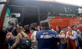 Sejumlah Pekerja Migran Indonesia (PMI) yang telah berhasil di evakuasi dari Ukraina menaiki bus usai mengikuti pelepasan PMI dari Ukraina ke Daerah Asal di Kantor BP2MI, Jakarta, Senin (7/3/2022). Sebanyak 26 PMI dipulangkan ke daerah asal usai tiba dari Ukraina dan telah menjalani isolasi sejak 3 Maret lalu.Prayogi/Republika. (FOTO : Prayogi/Republika)
