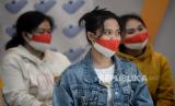 Sejumlah Pekerja Migran Indonesia (PMI) yang telah berhasil di evakuasi dari Ukraina mengikuti pelepasan PMI dari Ukraina ke Daerah Asal di Kantor BP2MI, Jakarta, Senin (7/3/2022). Sebanyak 26 PMI dipulangkan ke daerah asal usai tiba dari Ukraina dan telah menjalani isolasi sejak 3 Maret lalu.Prayogi/Republika. (FOTO : Prayogi/Republika)