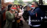REPUBLIKA.CO.ID, JAKARTA --Kepala Badan Pelindungan Pekerja Migran Indonesia (BP2MI) Benny Rhamdani (kanan) memberikan salam kepada para Pekerja Migran Indonesia (PMI) yang telah berhasil di evakuasi dari Ukraina saat pelepasan PMI dari Ukraina ke Daerah Asal di Kantor BP2MI, Jakarta, Senin (7/3/2022). Sebanyak 26 PMI dipulangkan ke daerah asal usai tiba dari Ukraina dan telah menjalani isolasi sejak 3 Maret lalu