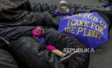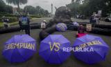 Sejumlah massa aksi melaksanakan unjuk rasa di kawasan Patung Kuda, Jakarta, Selasa (8/3/2022). Unjuk rasa dalam rangka memperingati Hari Perempuan Internasional itu menuntut pemerintah untuk mewujudkan sistem perlindungan sosial yang tidak diskriminatif dan segera mengesahkan RUU TPKS yang pro terhadap korban kekerasan. Republika/Putra M. Akbar (FOTO : Republika/Putra M Akbar)