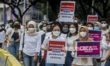 Unjuk rasa dalam rangka memperingati Hari Perempuan Internasional itu menuntut pemerintah untuk mewujudkan sistem perlindungan sosial yang tidak diskriminatif dan segera mengesahkan RUU TPKS yang pro terhadap korban kekerasan.