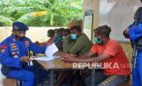 Personil Ditpolairud Polda Aceh melakukan pemeriksaan sejumlah anak buah kapal (ABK) ikan asing berbendera India dengan nama Blessing dan nomor register IND-AN-SAMM-2110 saat diamankan di dermaga pelabuhan Lampulo, Banda Aceh, Aceh, Selasa (8/3/2022). Ditpolairud Polda Aceh bersama petugas pangkalan Pengawasan Sumberdaya Kelautan dan Perikanan (PSDKP) di daerah itu menangkap kapal ikan berbendera India beserta delapan ABK , diduga melakukan pencurian ikan di perairan Pantai Barat Provinsi Aceh. (FOTO : Antara/Ampelsa)