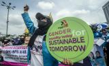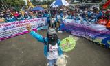 REPUBLIKA.CO.ID, JAKARTA -- Sejumlah buruh perempuan melakukan aksi unjuk rasa dalam rangka memperingati Hari Perempuan Internasional di depan Gedung DPR, Jakarta, Selasa (8/3/2022). Dalam aksinya mereka menuntut agar adanya hak yang berkaitan dengan perempuan dalam pekerjaan serta membatalkan UU Omnibuslaw Cipta Kerja.